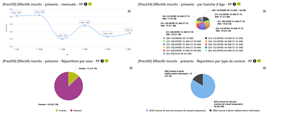 Le type d’effectif choisi, le type de contrat et le type de présence sont des indicateurs déterminants au niveau du résultat final. Si ces indicateurs sont mal utilisés, ils peuvent fausser l’analyse finale.