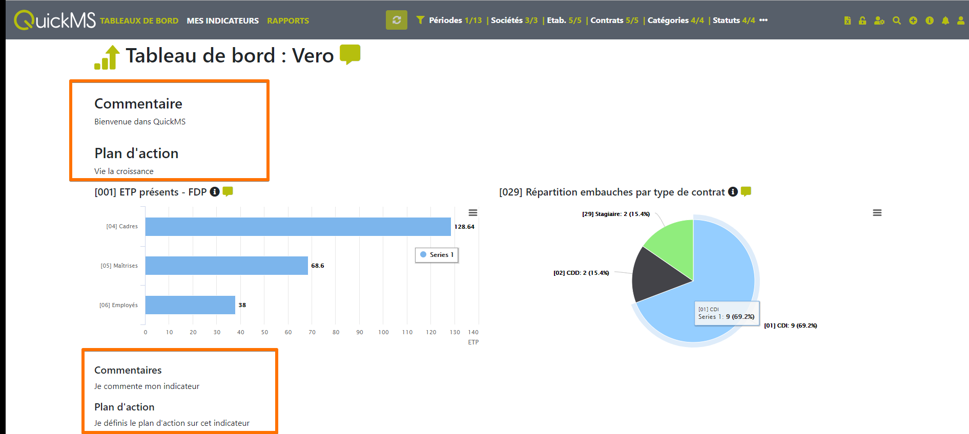 Une bibliothèque avec tous les indicateurs RH indispensables, est mise à votre disposition par GrafiQ : effectif, masse salariale, absentéisme etc..