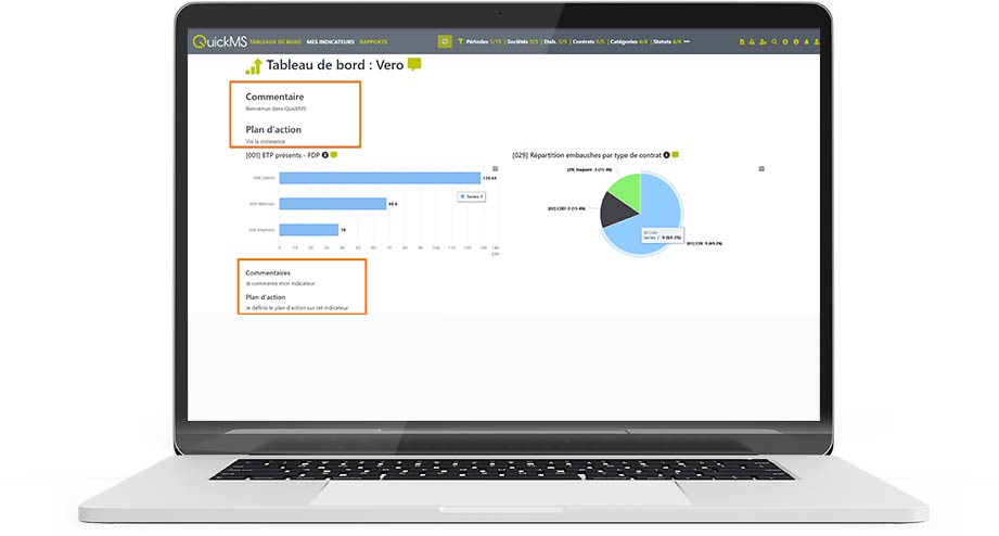 Vous pouvez également utiliser nos 70 tableaux de bord RH préconçus.Notre logiciel en mode SaaS facilite le reporting RH, le suivi de vos indicateurs et leur analyse en interconnectant les différentes données insérées dans le système d’information.